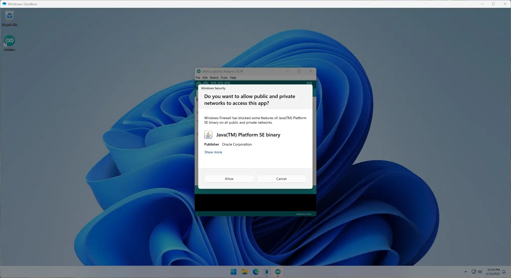Klik op de knop ‘Allow’ om de instellingen op te slaan, waarna het programma wordt gestart.