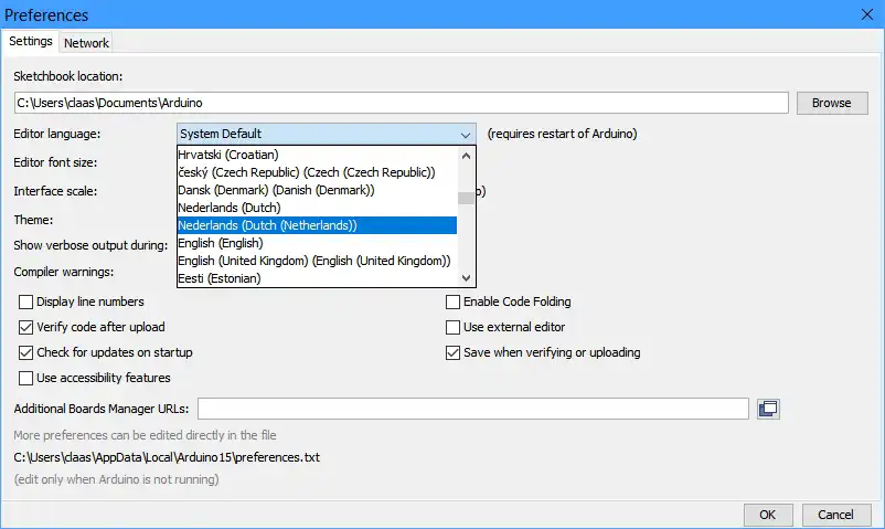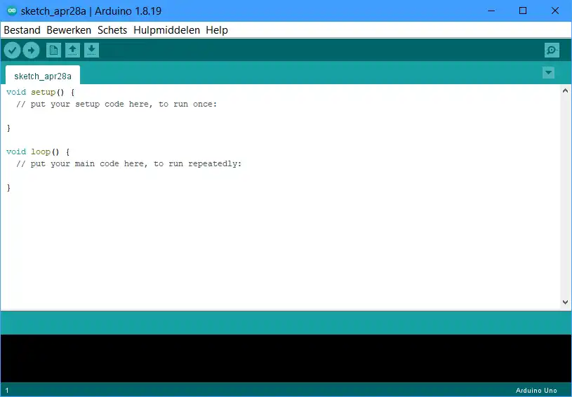Sluit Arduino IDE af en start het programma opnieuw op. Alles is nu in het Nederlands.