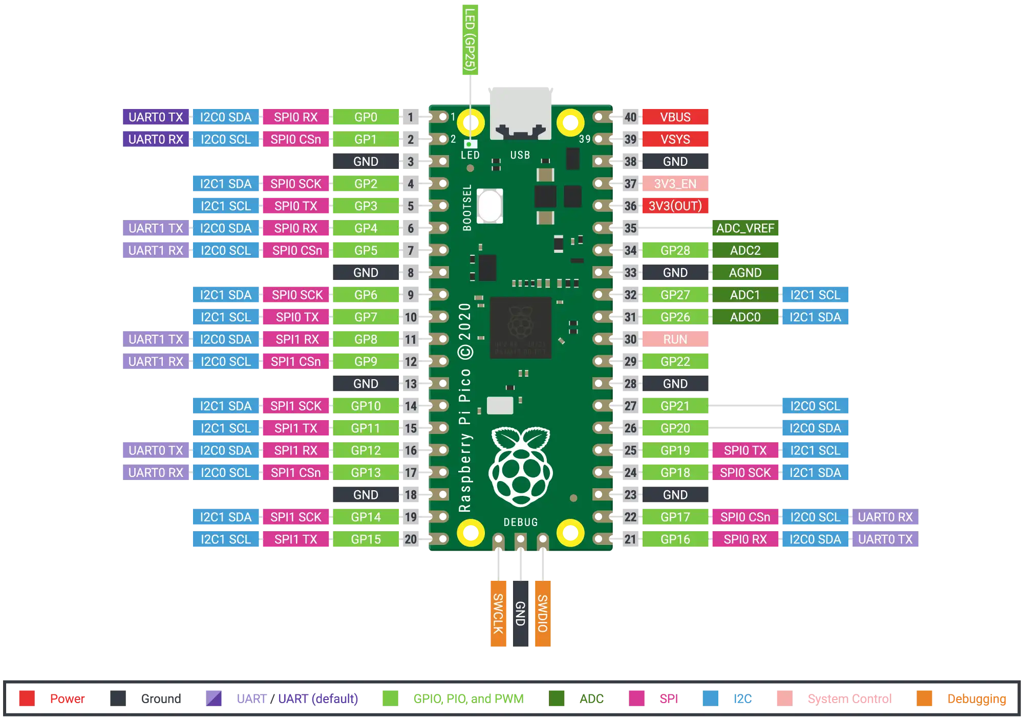 Op deze pagina vind je een overzicht van de pinbezetting voor verschillende typen microcontrollerborden. Bovenaan zie je de pinnen van de ESP die we in de workshops gebruiken. Voor elk bord vind je welke pinnen geschikt zijn voor leds, sensoren en andere componenten. Ook staan de pinnen met speciale functies, zoals communicatie via UART, I²C of SPI, en pinnen voor PWM, zodat je je projecten veilig en correct kunt aansluiten.